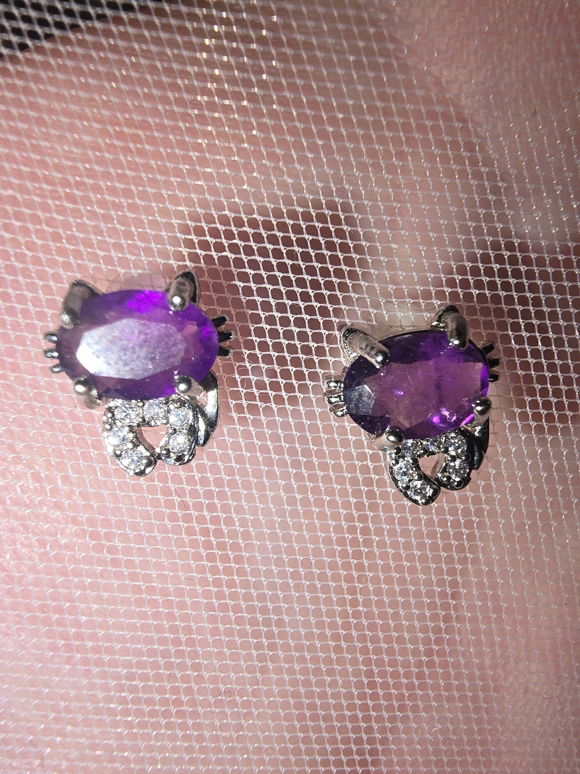 Pretty earrings, 925 silver and Amethyst in the design of cats.