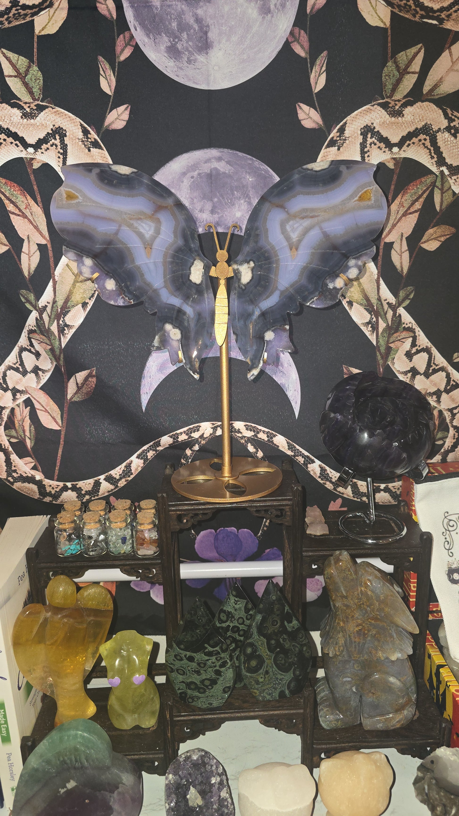 Blue Flower Agate XL Statement Butterfly Wings on Stand